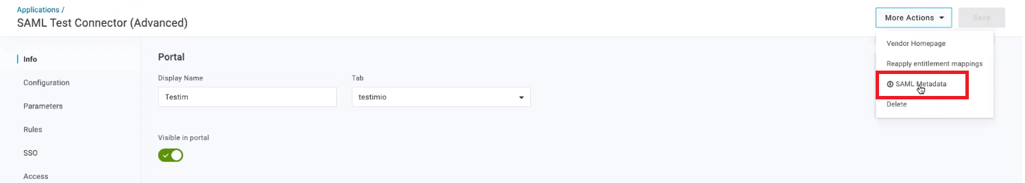 Still in OneLogin, go back to the Info screen and click the More Actions drop down menu.