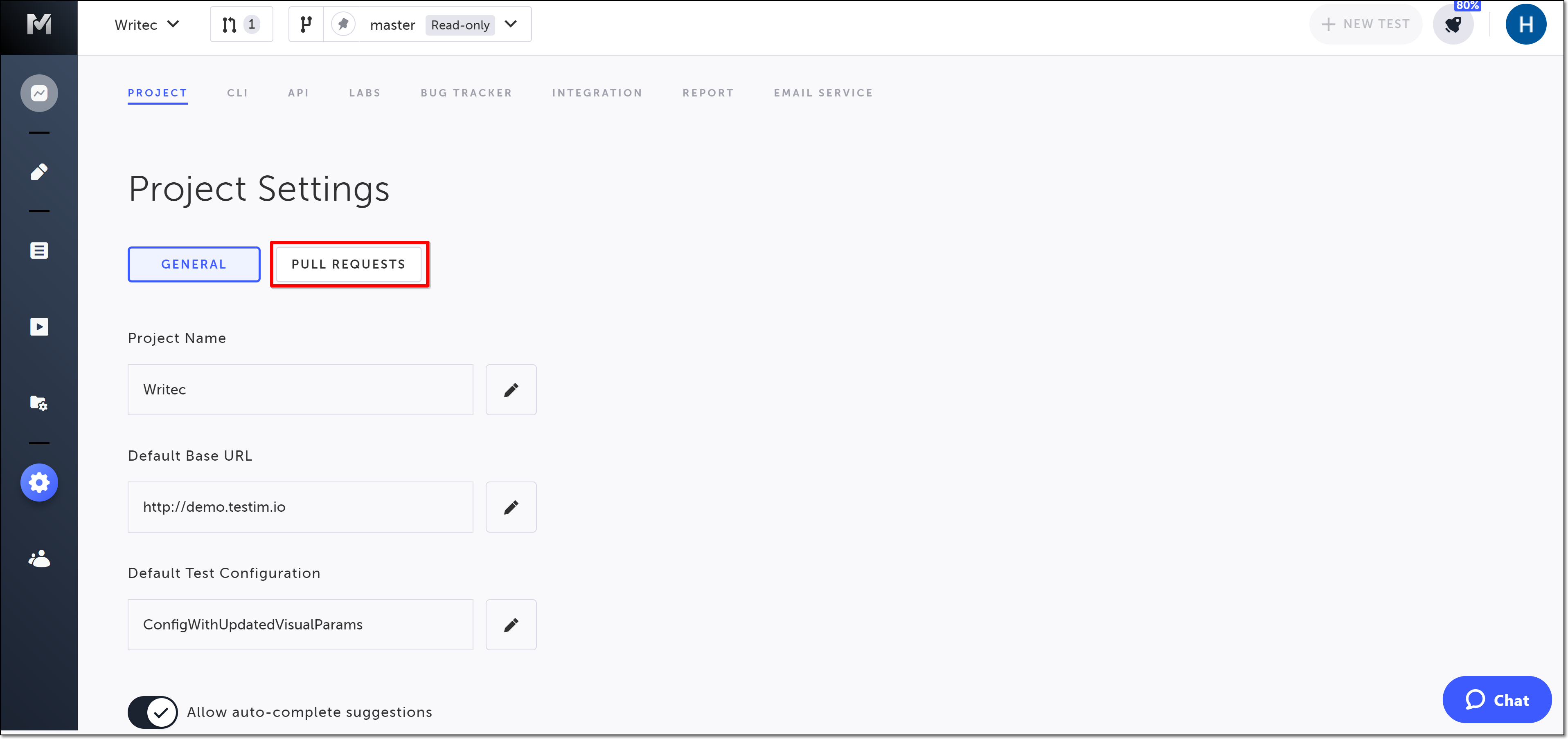 On the Settings > Project page of your master read-only branch, click Pull Requests.