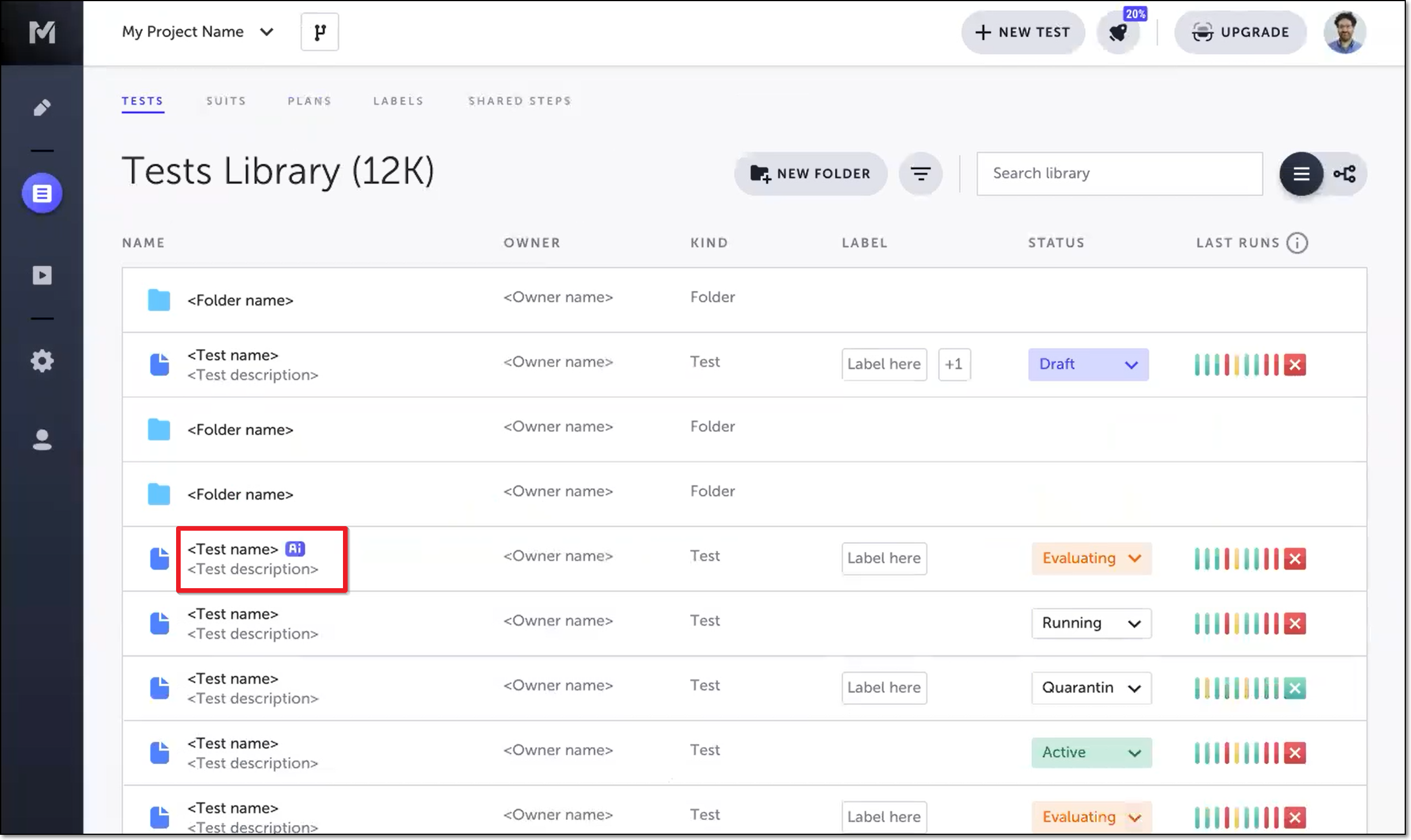 Testim inserts an “Ai” icon after the name of the test for which one or more degraded locators were replaced with auto-improved locators. The auto improve icon is shown for approximately two weeks.