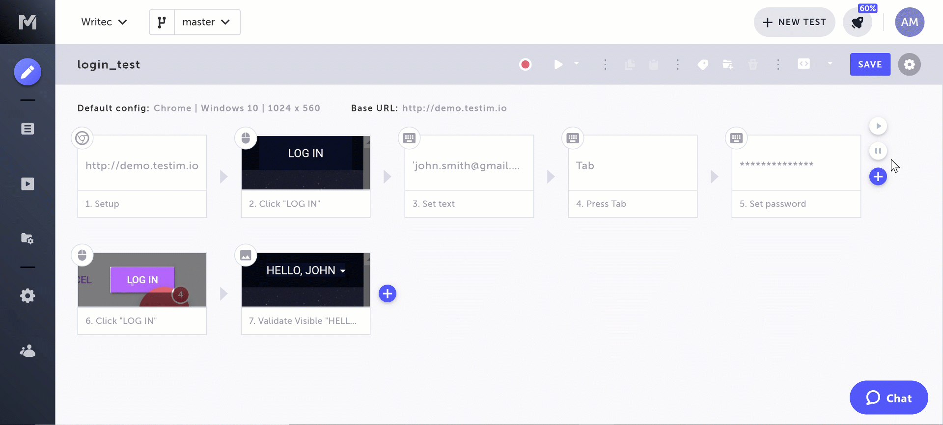 Click on the Test Properties (:fa-cog:).