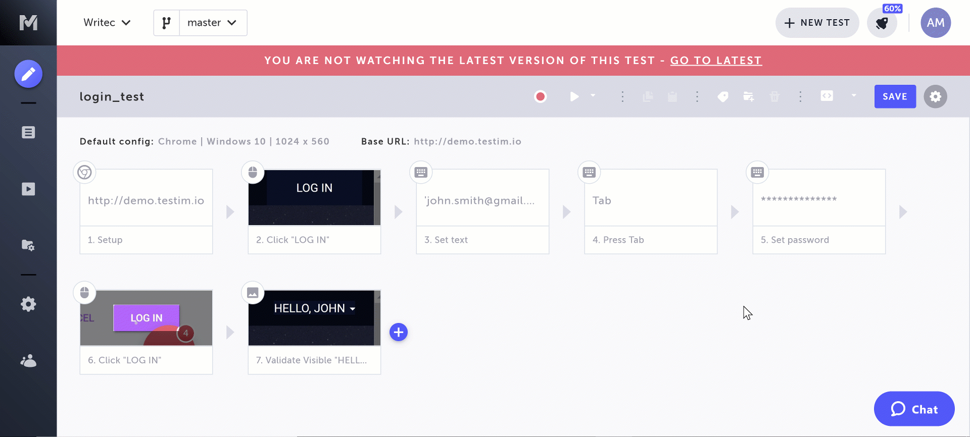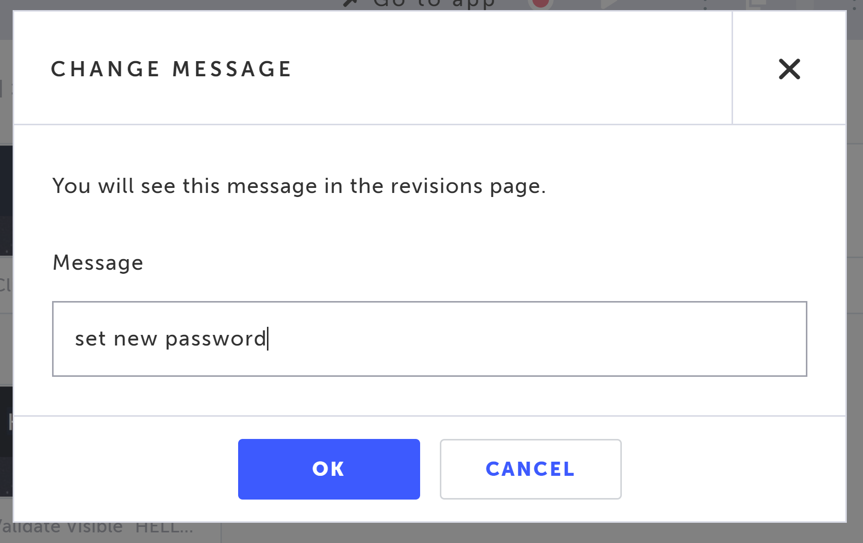 In the following example there is a test called "login_test", in which the step that sets the password was updated. After saving the test, the following dialog is displayed, prompting to optionally specify the purpose of the change: