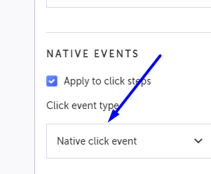 Under Click event type, the current default setting is displayed. To overwrite the default setting for this test configuration, click the drop-down menu and select the other value (e.g., if it was Native click event, select Non-native click event).