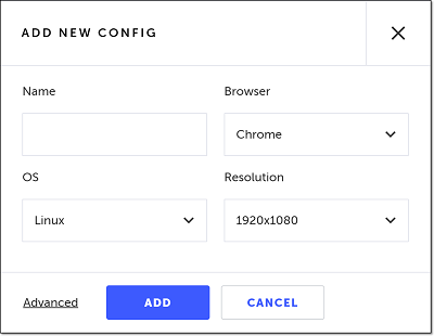 In the Name field, enter a name for this configuration. (If you don’t enter a name, the test configuration will NOT be saved in the Configuration Library.)