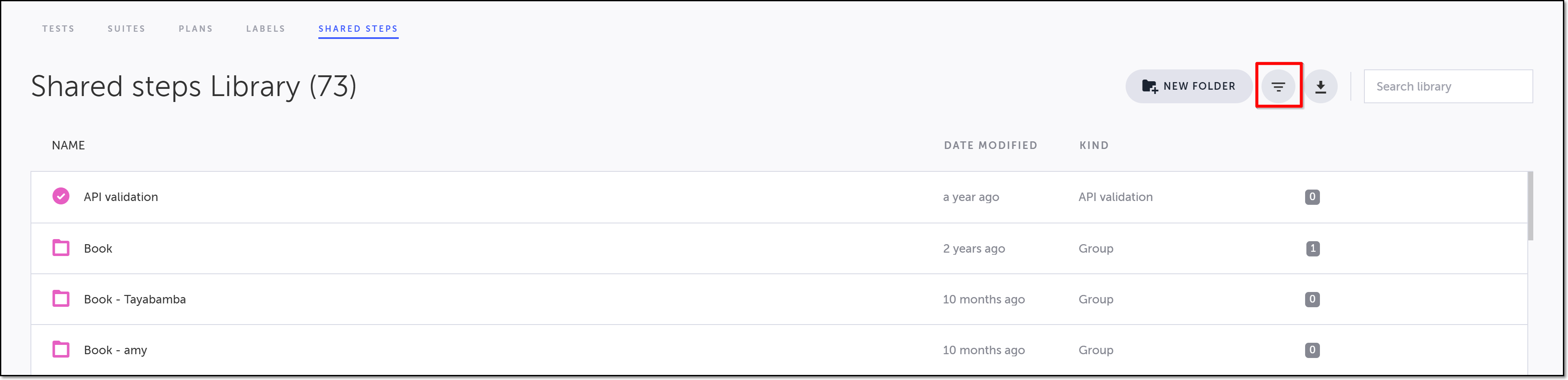 → To filter the Shared Steps Library: