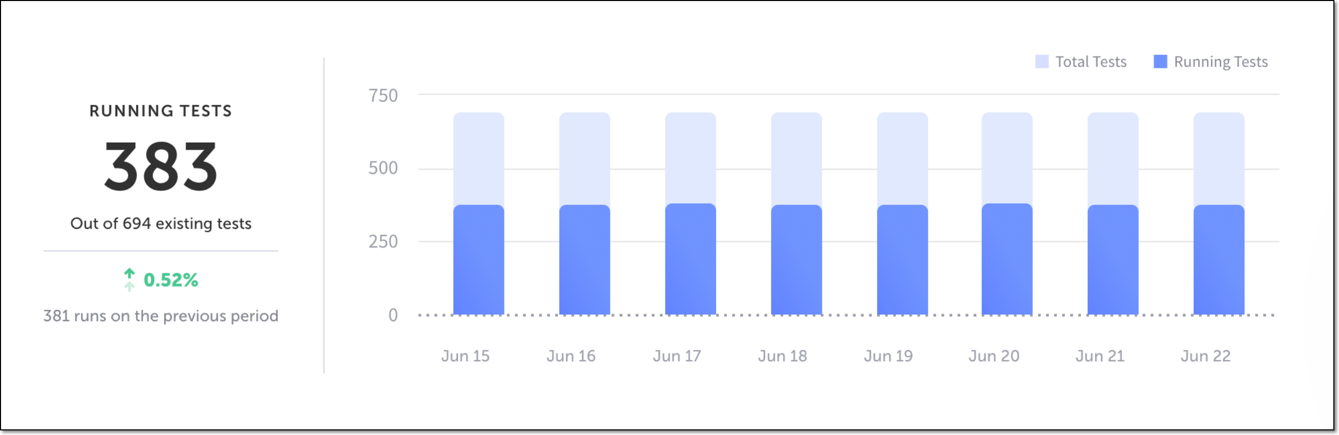 This pane includes information about your running tests. A running test is defined as a test that ran at least one time in the selected period.