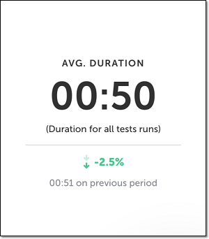 The percentage change of the average duration of all of the test runs from the previous time period to the current time period.