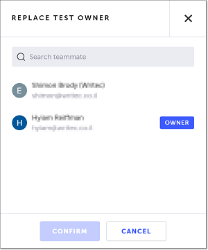 Click the Replace owner icon (or right-click on a test and from the list that is shown choose Replace owner).