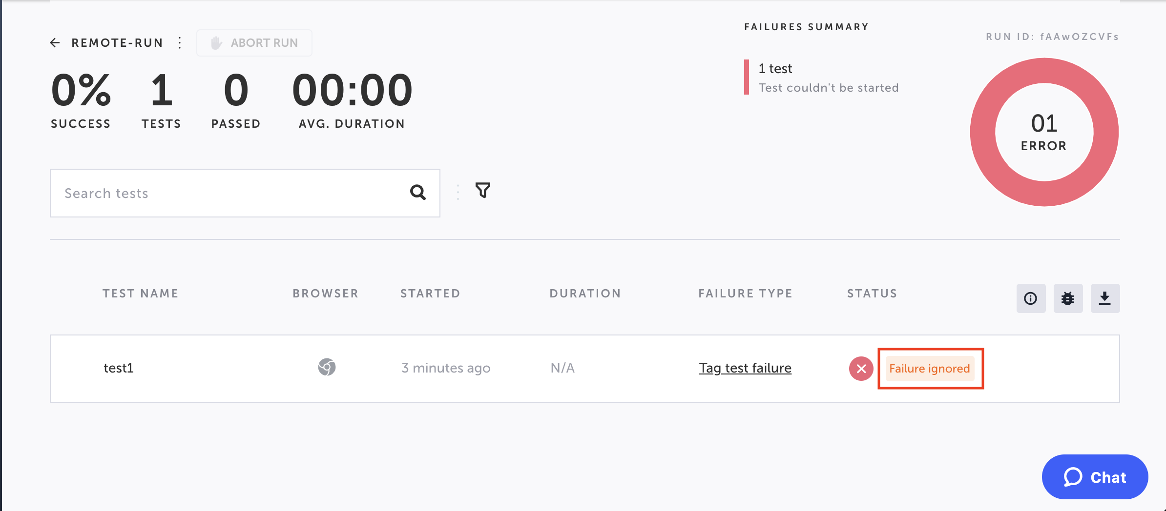 Evaluating failed tests will appear in the CLI run summary as FAILED-EVALUATING