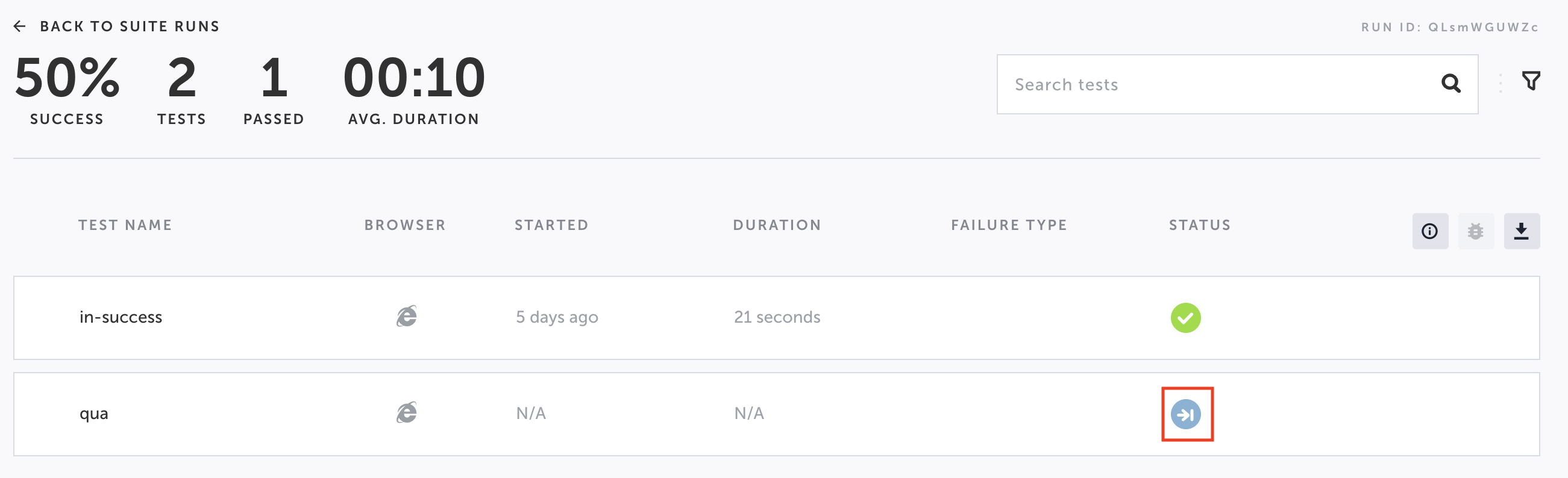 Quarantine tests will not run (they will appear in the suite run with a quarantine indication)