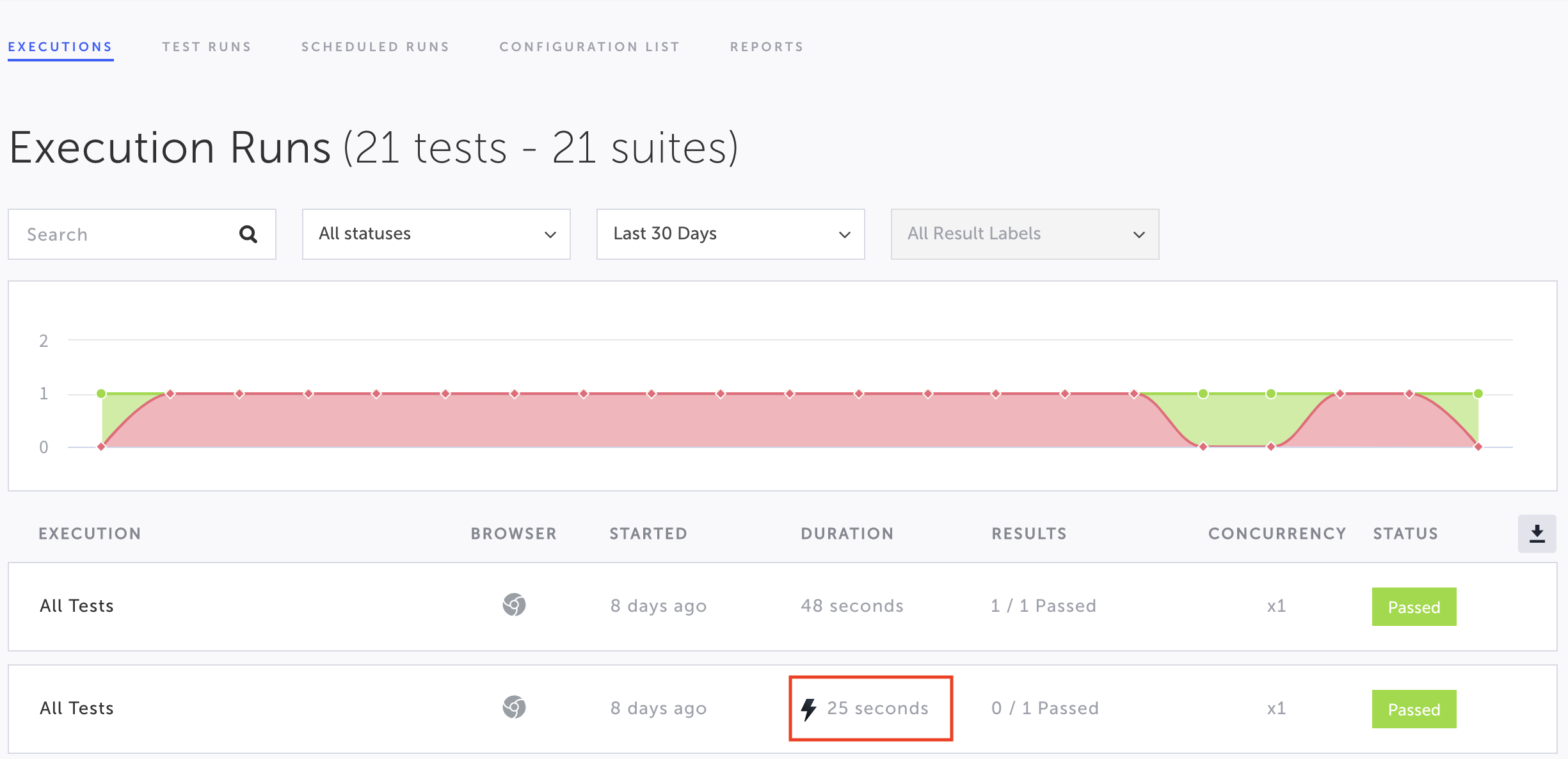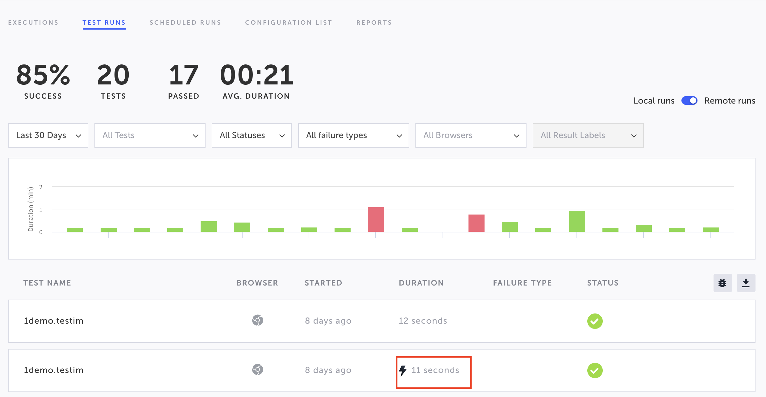 Running your tests in turbo-mode can be done either by CLI run or scheduled run. The tests will run in extension mode only (Chrome and Edge Chromium). When running in turbo-mode the following settings will apply: