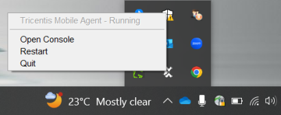 Start Tricentis Mobile Agent, using the Tricentis Mobile Agent desktop shortcut or search for it in the Windows search bar.