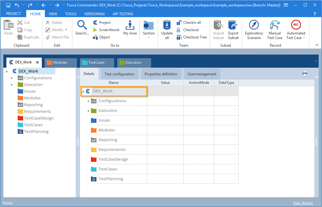 1. Öffnen Sie den Tosca Commander auf dem Rechner des Distributed Execution (DEX) Server.