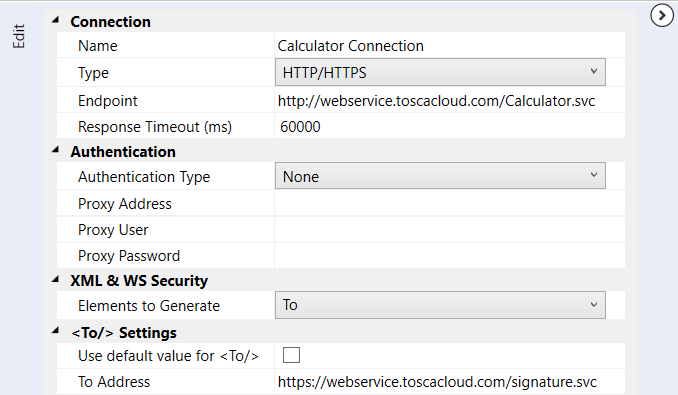 Geben Sie im Feld To Address eine URL ein, z. B. https://webservice.toscacloud.com/signature.svc.