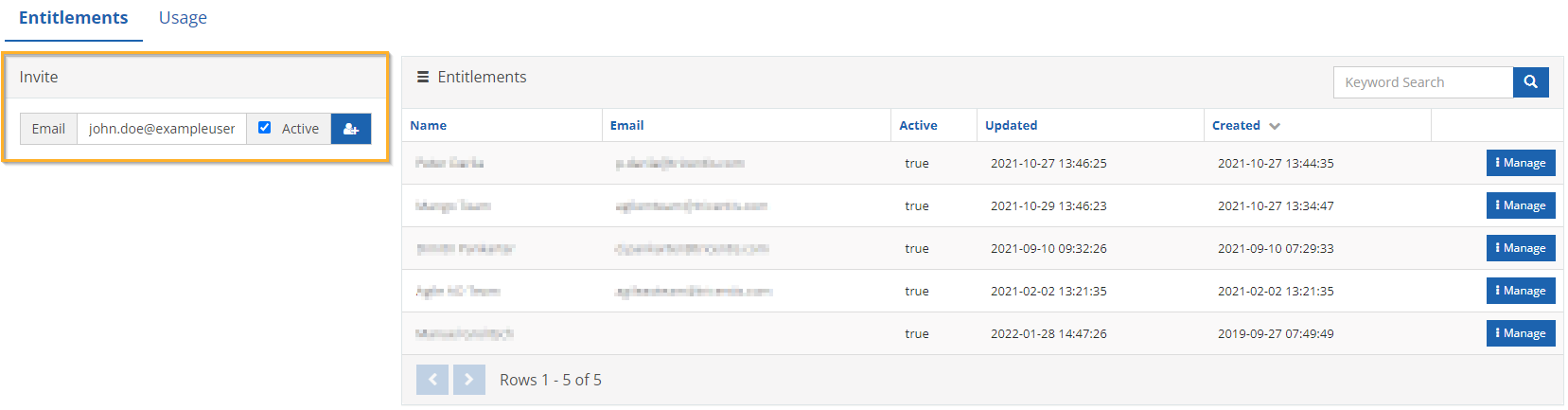 Klicken Sie in der entsprechenden Zeile der Lizenz, die Sie verwalten möchten, auf Manage. Sie können eine Lizenz deaktivieren oder löschen.