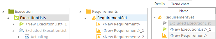 . Wenn die Ausführungsliste mit einem Anforderungs-Set verknüpft ist, wird sie auch im Bereich Anforderungen ausgegraut.