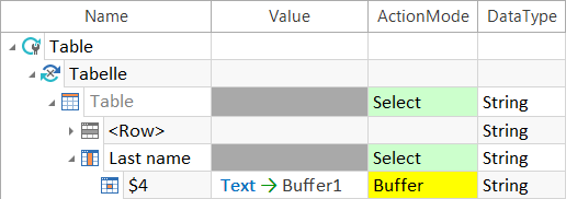 Der Wert, der in der vierten Zeile in der Spalte Last name steht, wird in den Buffer Buffer1 geschrieben.