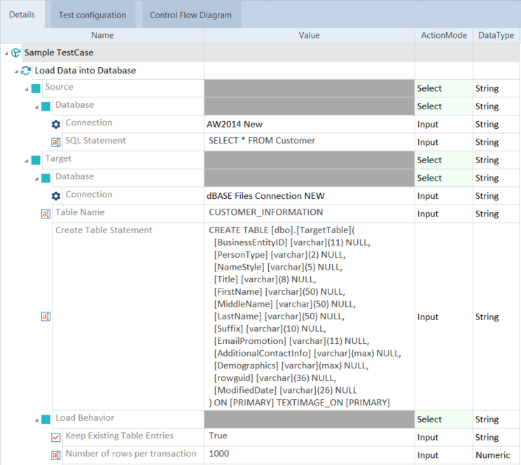 Tricentis provides this Module to help the testing team run certain tests with distributed data. For a testing tool, it's not best practice to move data around. Also, this Module doesn't perform well with large data sets. Tricentis recommends to use a tool designed for data moves and not rely on this Module for that purpose. |
