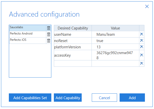 If you need to use custom Desired Capabilities, you can specify them when you scan your mobile application with the Mobile Scan and when you execute your TestCases. This chapter describes how to: