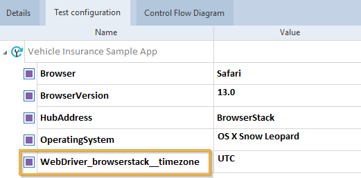 Create the test configuration parameters Browser, BrowserVersion, HubAddress and OperatingSystem on the level of the TestCase you want to execute.