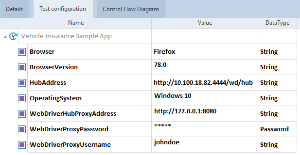 WebDriverHubProxyAddress: enter the IP address of the proxy server on which you want to execute the TestCase.