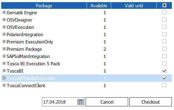 To do so, expand the license package. Then enable the checkbox in the respective row.