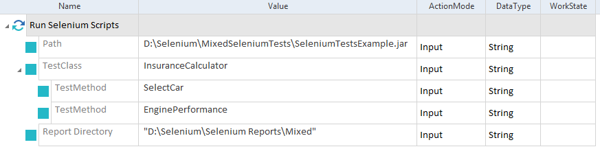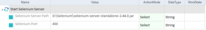 Path to the Selenium server JAR file. Tosca Commander automatically uses the ActionMode Select. |