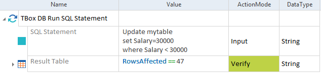 If needed, you can buffer or verify the table property RowsAffected. This property indicates how many rows the specified SQL statement affected. If the statement didn't affect any rows, the value is 0. For SELECT statements, the value is -1. You can export the result of your SQL Statement into a comma separated file. For more information, see chapter "Export the result of an SQL Statement". |