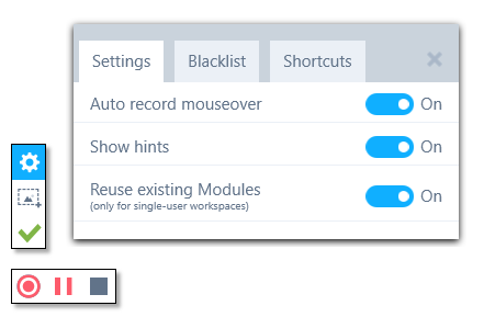 Specify whether the Recorder should try to update existing Modules when saving the results of the recording. If you turn off this setting, the Recorder always creates new Modules. This setting only works for single-user workspaces. In multi-user workspaces, the Recorder always creates new Modules based on the recording. |