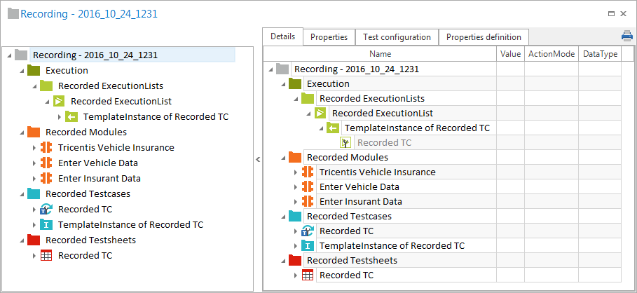 Using these Modules, the Recorder creates a TestCase based on your recorded actions. It saves the TestCase in the TestCase folder Recorded Testcases within the same ComponentFolder as the newly recorded Modules.