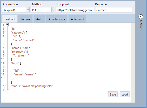 • Verbindung auswählen oder eine HTTP-Methode und einen Endpunkt angeben