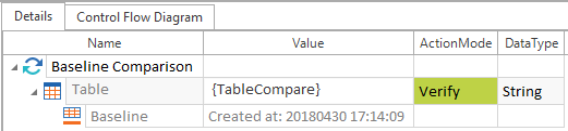 Bitte beachten Sie: Wenn die Einstellung EnableAutoGenerateBaseline aktiviert ist, zeigt ein Status Passed bei der ersten Ausführung eines Testschritts mit dem Wert {TableCompare} im Feld Value nur an, dass die Baseline erfolgreich erstellt wurde. Ein Vergleich der Daten wird in dieser Phase nicht durchgeführt.