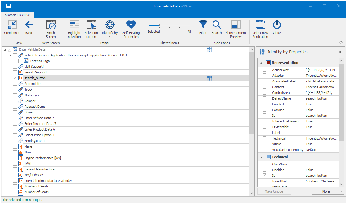 Das Identifizieren über Eigenschaften ist das Standardverfahren zur Identifikation von Controls in Tosca XScan.