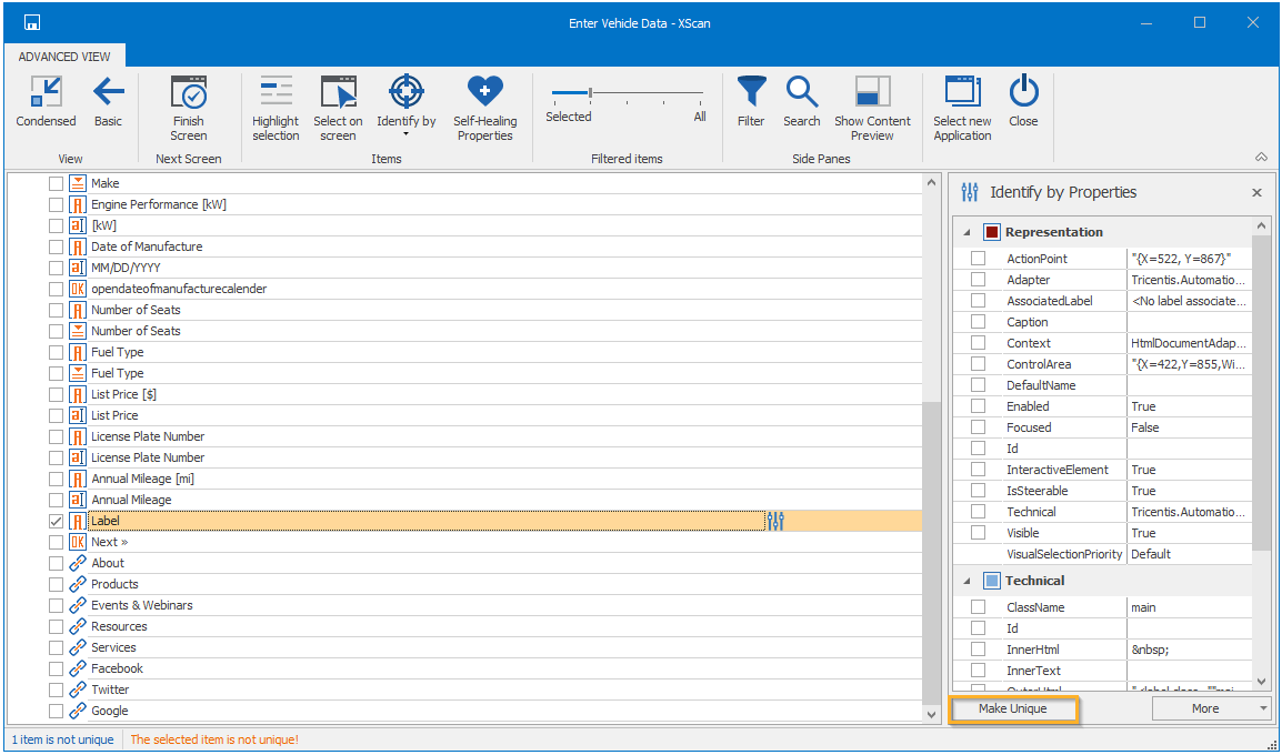 Wenn ein Control nicht eindeutig identifizierbar ist, können Sie Tricentis Tosca veranlassen, die Mindestanzahl an zusätzlichen Eigenschaften aus dem Bereich Identify by Properties auszuwählen, um es eindeutig zu machen.