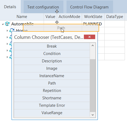 In this example, we use drag and drop to insert the Path column at the position with the two arrows (between the Value and the ActionMode column).