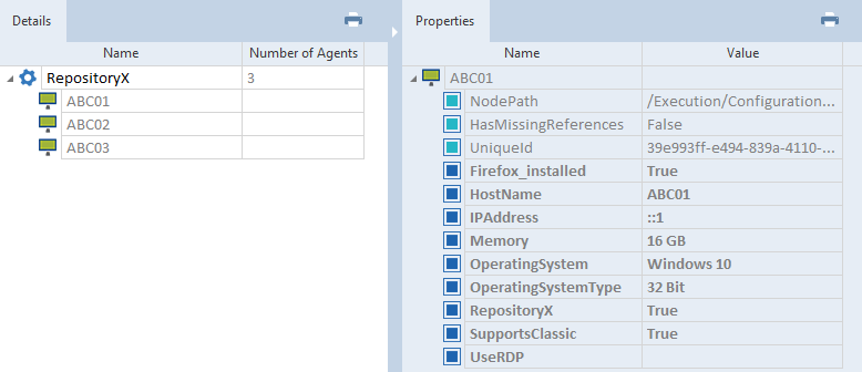 Anzeigen aller Agenten, die der RepositoryX Konfiguration in der RepositoryX Konfiguration entsprechen