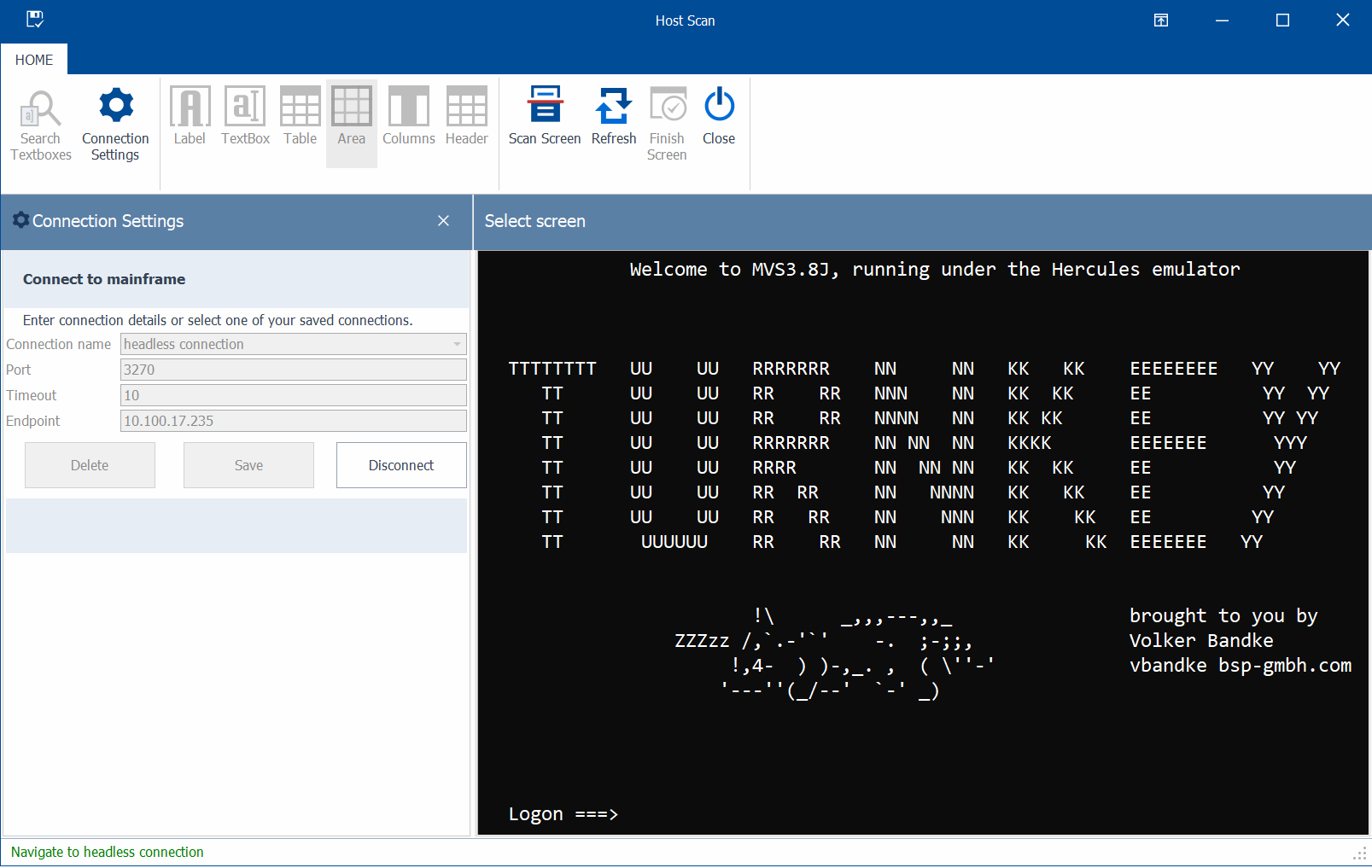 6. Navigieren Sie Ihre Mainframe-Applikation über das Fenster Host Scan.