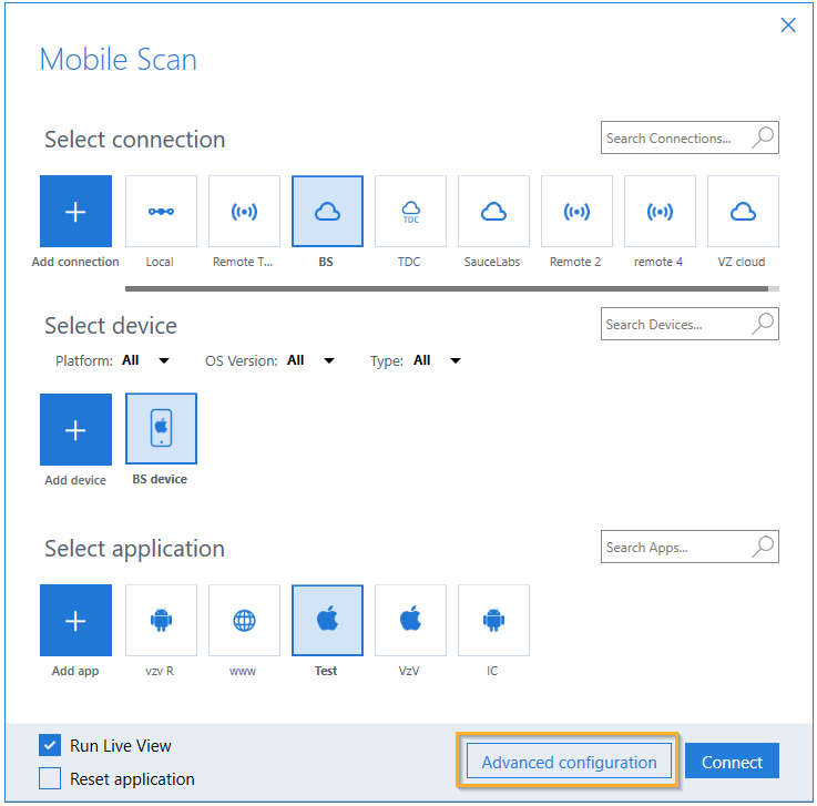 Schaltfläche Advanced configuration im Fenster Mobile Scan