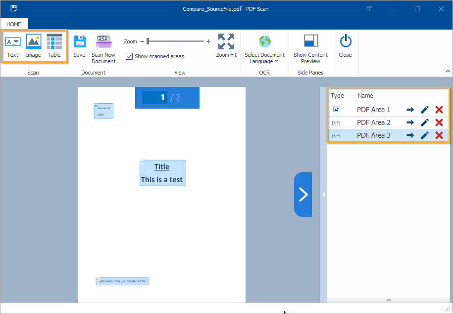 Wählen Sie Text, Image oder Table im Menüband aus und markieren Sie einen oder mehrere Bereiche, die Sie ausschließen möchten.
