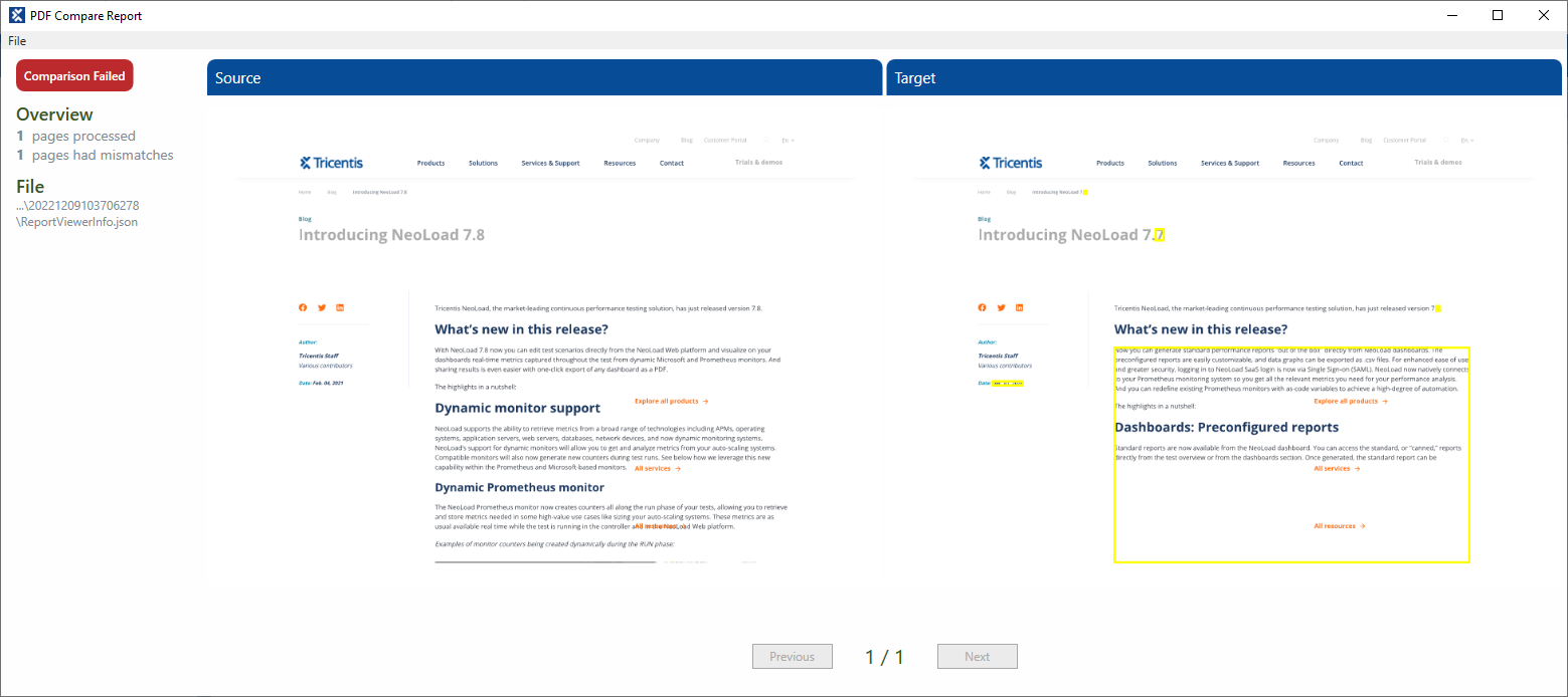 Mit der PDF Engine 3.0 können Sie zwei PDF-Dateien mit dem Modul 1:1 Compare vergleichen. Es führt einen visuellen Vergleich zwischen zwei Dateien durch, die Sie angeben: