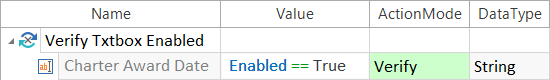 Es wird überprüft, ob das Date Picker Control Charter Award Date aktiviert und editierbar ist.