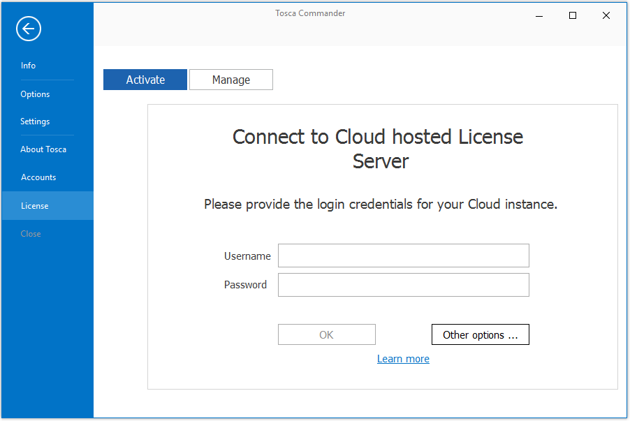 Klicken Sie auf OK. Wenn Sie stattdessen zum Startbildschirm des Reiters License zurückkehren möchten, klicken Sie auf Other Options.