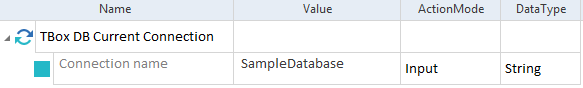 Es greift auf die Datenbank der zuletzt geöffneten Verbindung zu. Wenn Sie eine andere Verbindung mit dem Modul TBox DB Current Connection angegeben haben, greift das Modul stattdessen auf diese Datenbank zu.