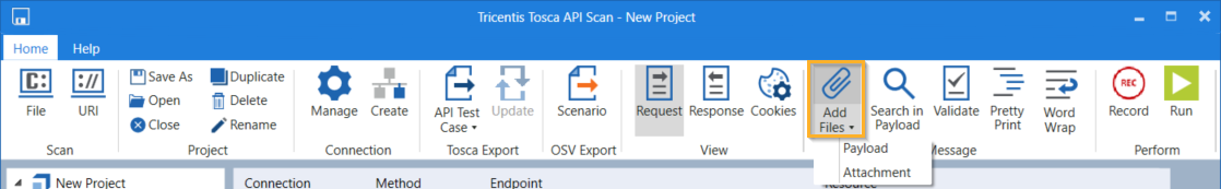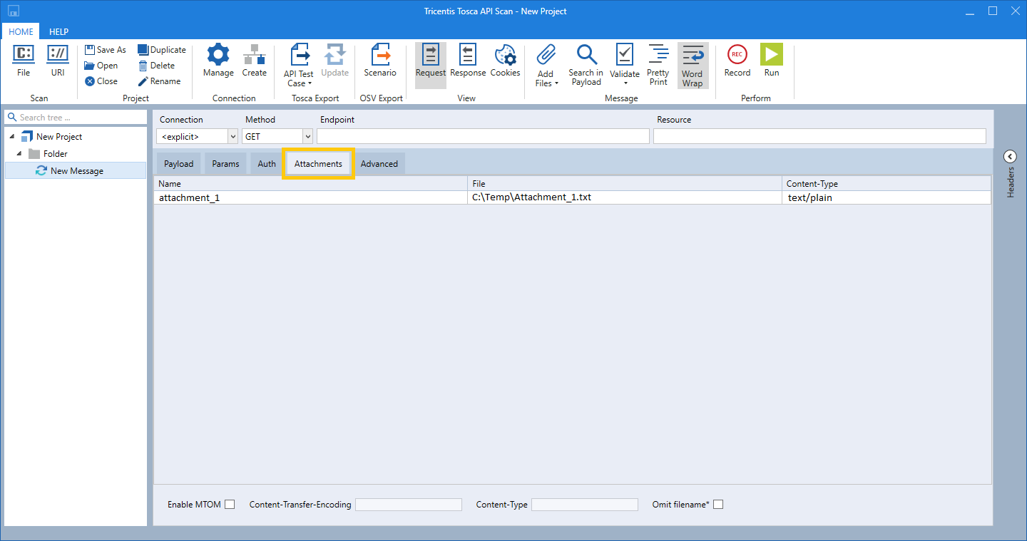 Wählen Sie im API Scan-Fenster eine Nachricht aus und klicken Sie im Nachrichtenabschnitt auf den Reiter Attachments.
