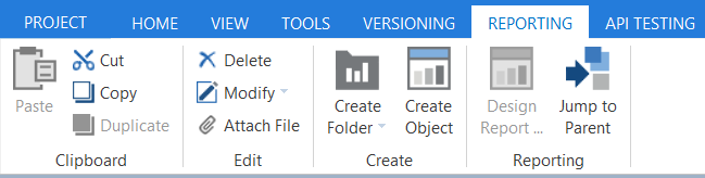 In diesem dynamischen Menü befinden sich Optionen für den Bereich Reporting im Tosca Commander.