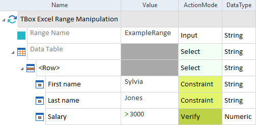Then the Engine performs a verification. In this particular row, the value of the cell in the column Salary should be greater than 3000. Steer Excel data |