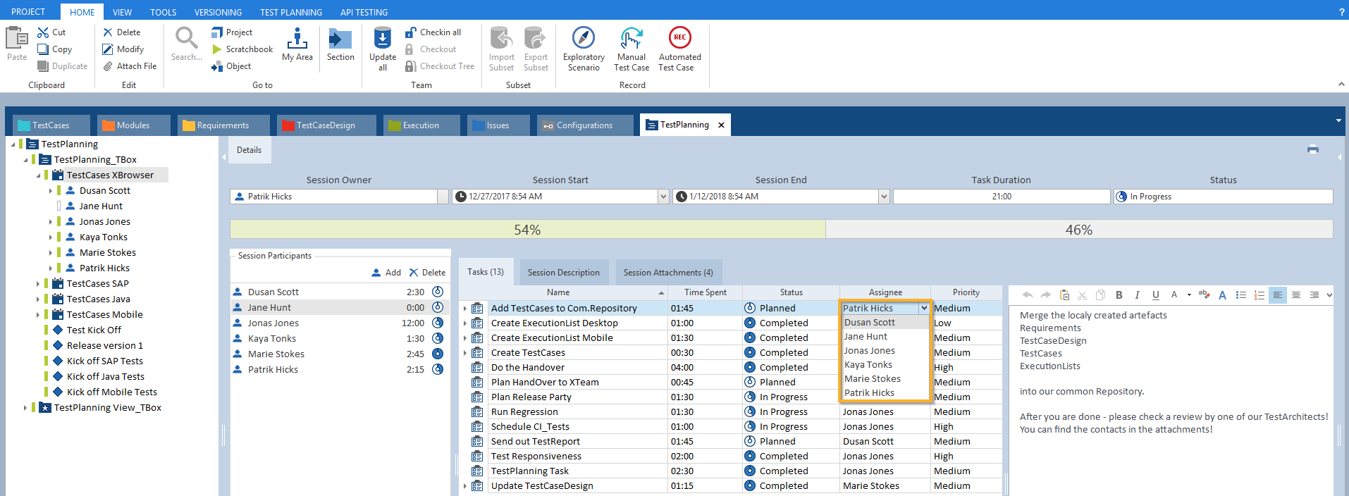 Assign Tricentis Tosca TestPlanning task to a session participant