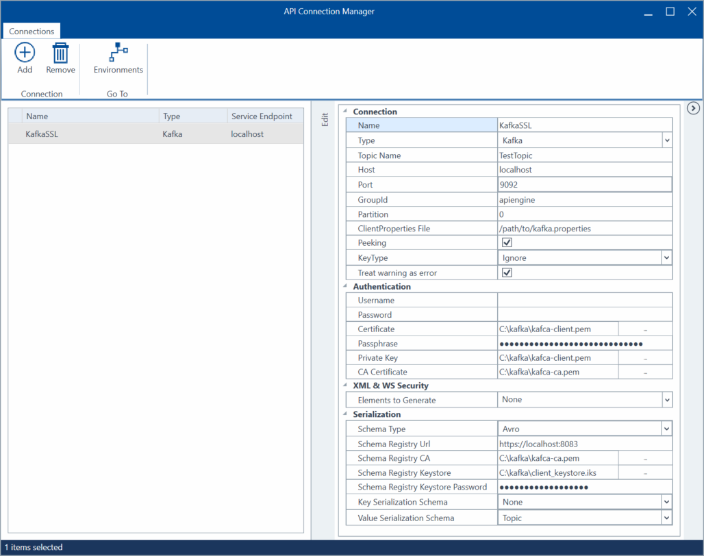 Sie können eine Apache Kafka-Verbindung im API Connection Manager konfigurieren.