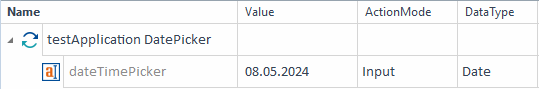Tosca XScan zeichnet die DatePicker-Formulare Long, Short und Custom auf und identifiziert sie alle als Text. Sie können DatePicker-Werte in Ihrem Testfall eingeben oder in den Buffer schreiben.