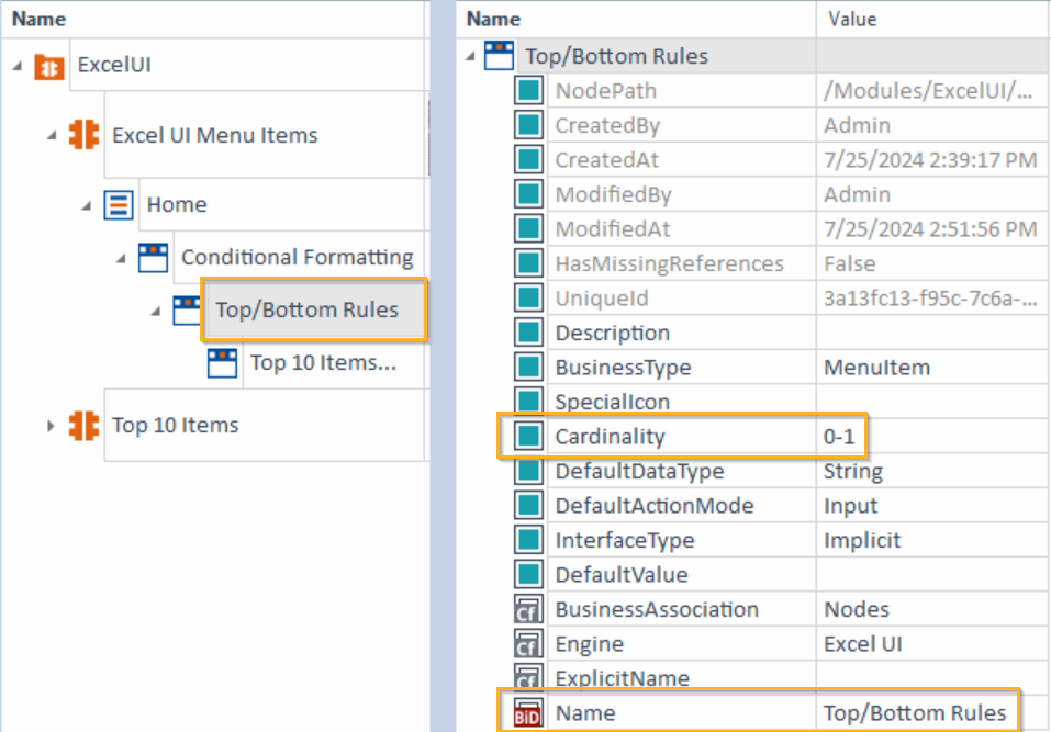 In diesem Beispiel konfigurieren Sie ein Modul, um die Menüoption Regeln für oberste/unterste Werte unter Start > Bedingte Formatierung zu steuern.