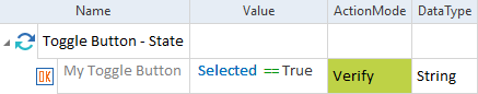 Der Zustand des Toggle Button wird durch die zusätzliche Eigenschaft Selected definiert. Sie können die folgenden Werte verwenden: